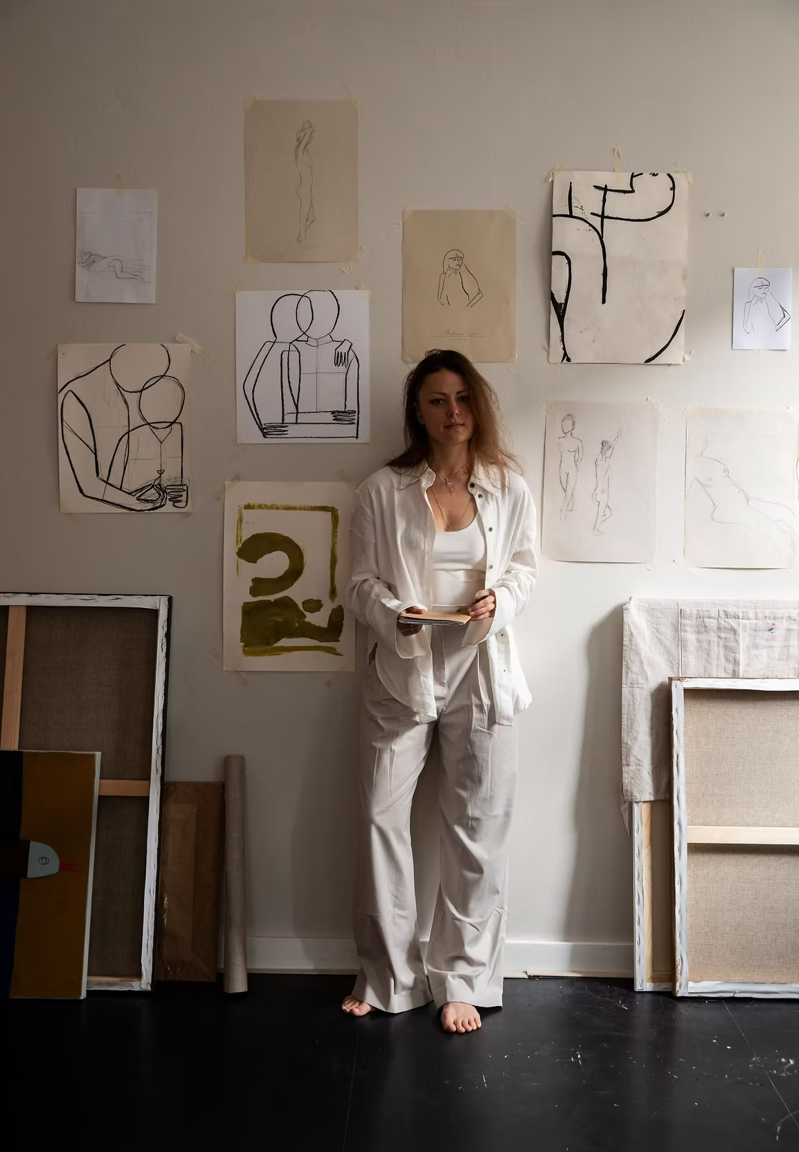 In the coming months, the work of visual artist Melanie Calis will be on view both online and in our atelier in Dalfsen. Her paintings are quiet explorations of human connection, emotion, and the space in between.