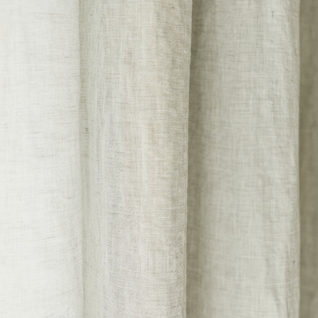This open-weave linen is woven for us in Italy. The bespoke fabric diffuses the light beautifully and has an amazingly soft look and feel. With a fabric width of 320 cm, these curtains can often be manufactured without any seams and are made with a single pleat, wave pleat or with a rod pocket. Available in six beautiful soft shades.