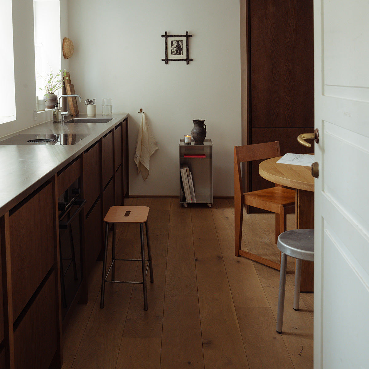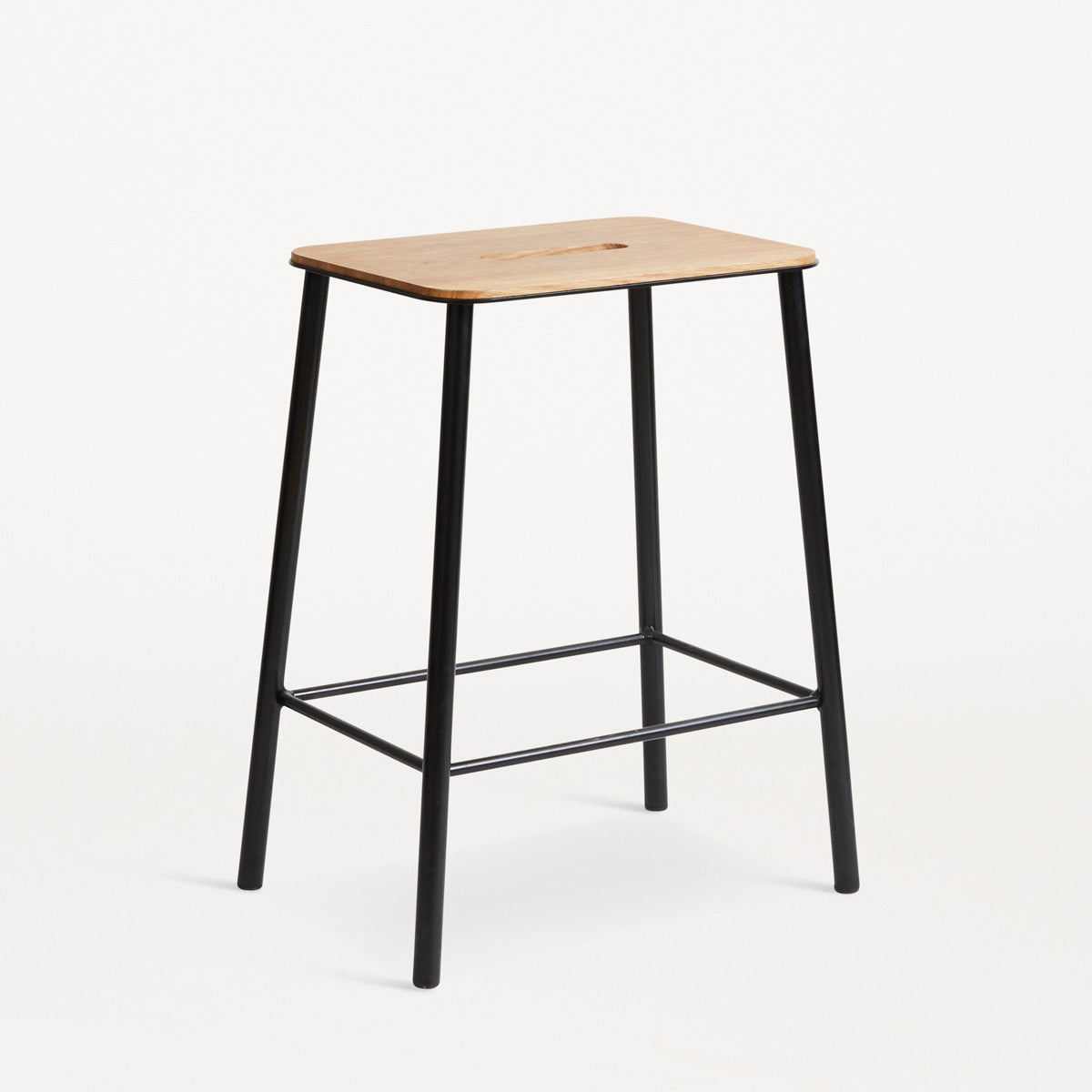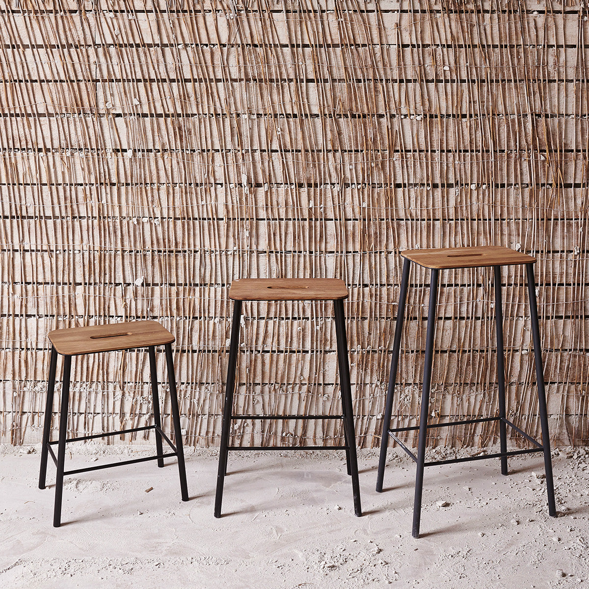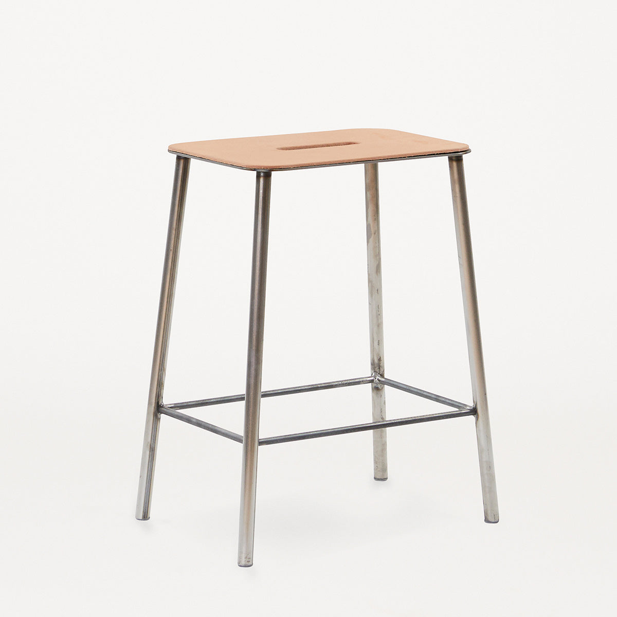 The Adam stool collection from Frama is inspired by industrial design, an artist's studio, and a workshop. The functionality and simplicity of the design, combined with strong materials, gives this stool a structural and utilitarian approach. The hole in the seat makes it easy and practical to move the stool around.