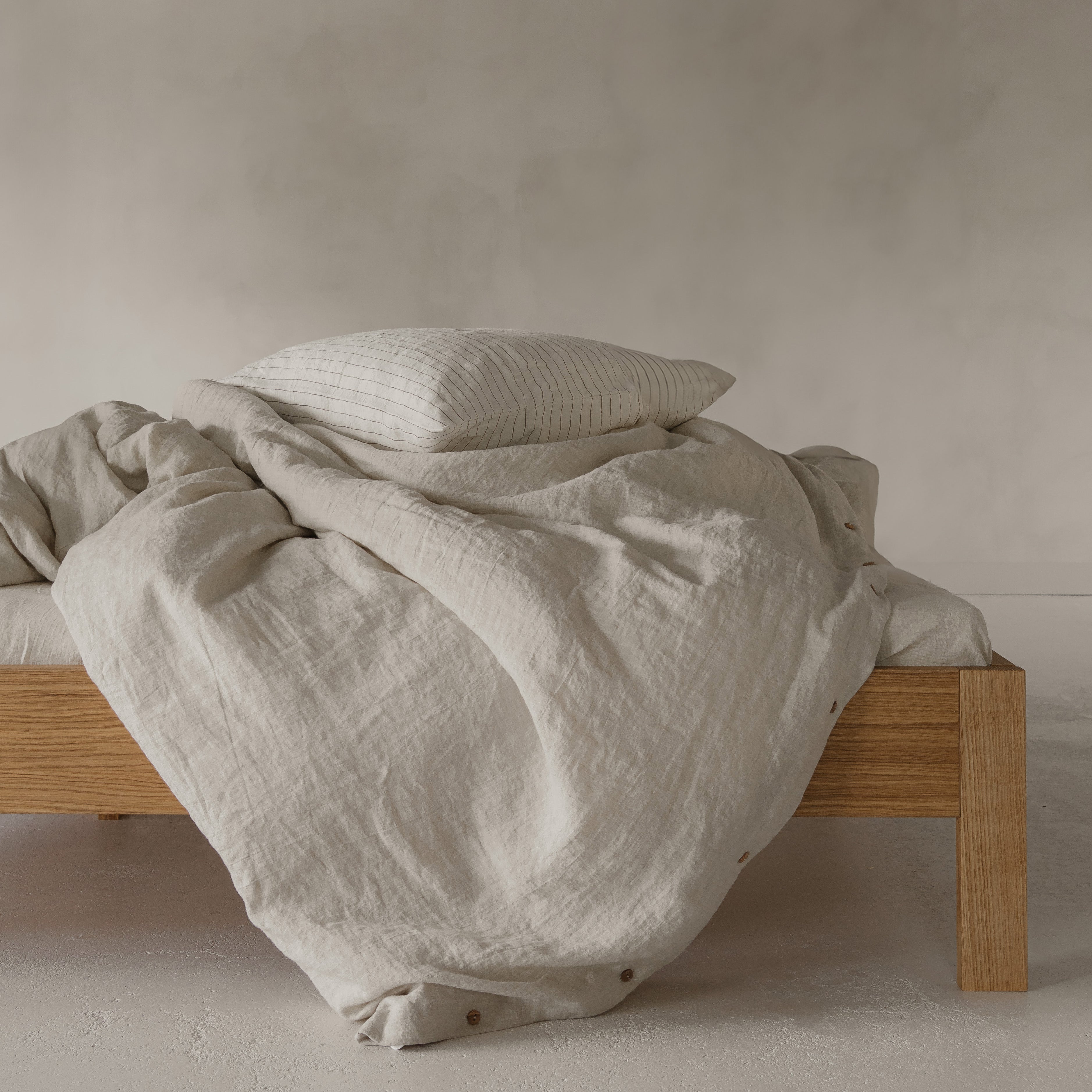 Create a natural bedroom with By Mölle linen bedding. Beautiful sustainable crafted with respect for the earth. All you need for a good night's sleep. The soft linen will keep you cool in summer and retains warmth when it is cold. Linen is also hypo allergenic and antibacterial, the ideal fabric for bedlinen. High quality chambray woven, which gives it character and depth in color. Available with wooden buttons or a large tuck in flap for closure.