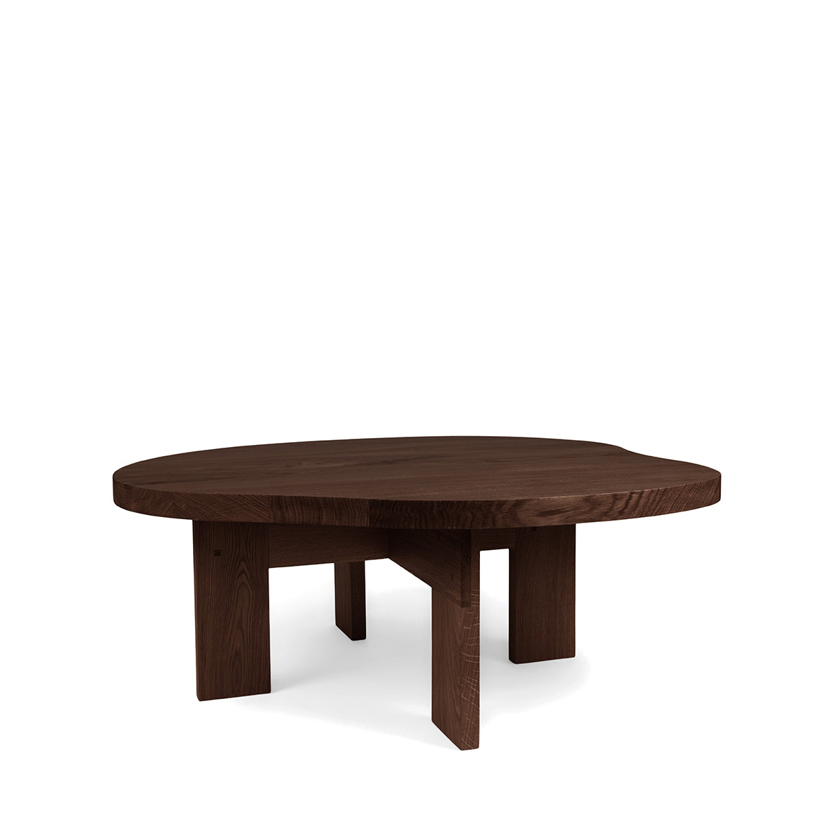 Introduced as a natural extension to The Farmhouse Series, the pond shaped wooden coffee table is inspired by the architectural elements of traditional farmhouses. This new addition presents the iconic, wavy, and uniquely sculptural pond design in a more contained dimension. Entirely crafted in solid oak, the item pays tribute to the elegance and malleability of wood.