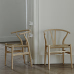 De CH24 Wishbone Chair is tijdloos Deens design ontworpen in 1949 door de wereldberoemde ontwerper Hans J. Wegner voor Carl Hansen & Søn. Het ontwerp is geliefd door de uitmuntende kwaliteit en fijn zitcomfort. Het vakwerk bestaat uit meer dan honderd stappen om tot deze handgemaakte stoel te komen. De zitting is volledig met de hand geweven van 120 meter koord. Duurzaamheid staat hoog in het vaandel. Een echte klassieker die generaties mee zal gaan. John F. Kennedy en Richard Nixon voerden er presidentiële debatten op.