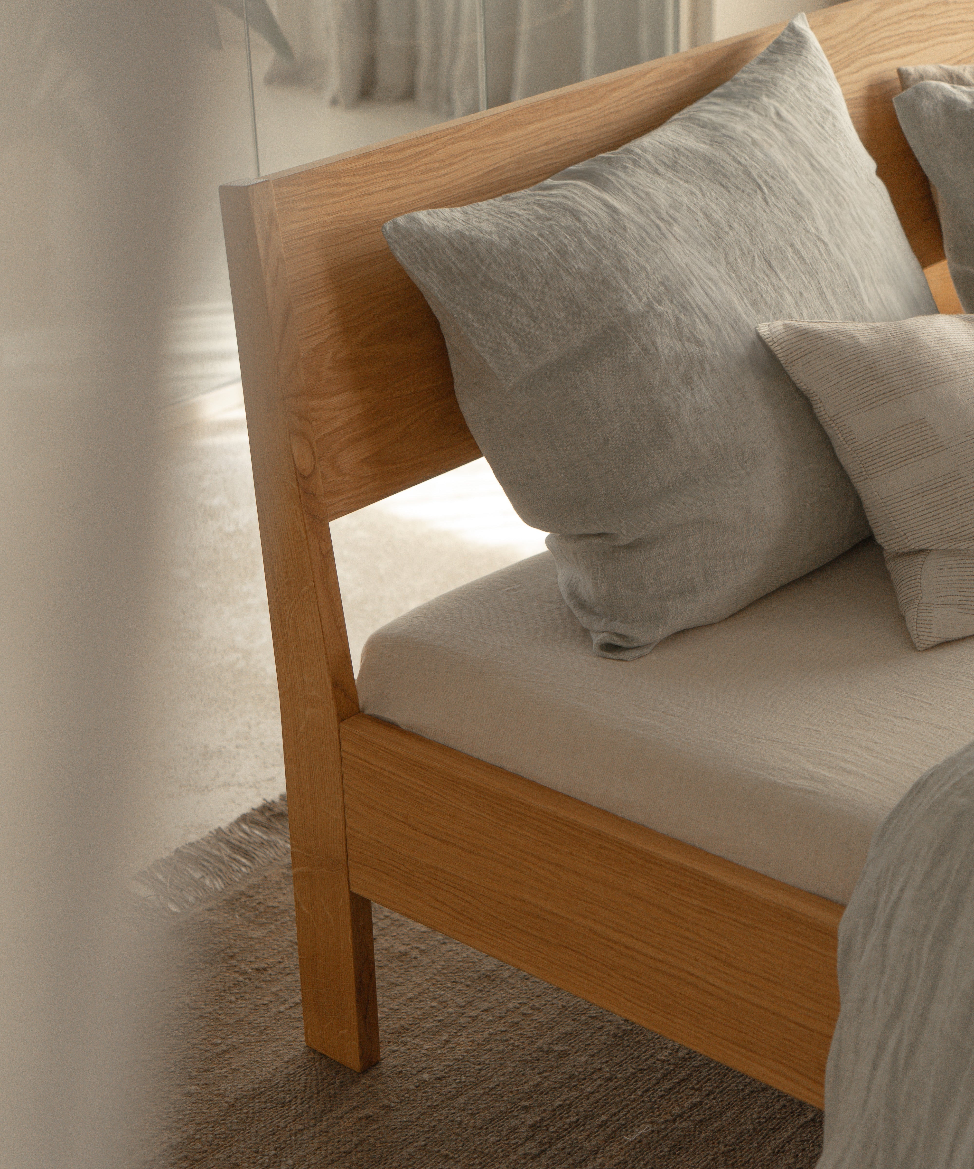 Het Ejer bed van RYE is is duurzaam Deens design, ontworpen om rust en eenvoud te brengen in je slaapkamer. Het stevige frame van eikenhout heeft een warme, natuurlijke uitstraling en heldere lijnen. Dankzij het in diepte verstelbare ontwerp kan het matras op de ideale hoogte worden geplaatst, zodat comfort en vormgeving perfect in balans zijn. Gemaakt met oog voor detail en duurzaamheid.