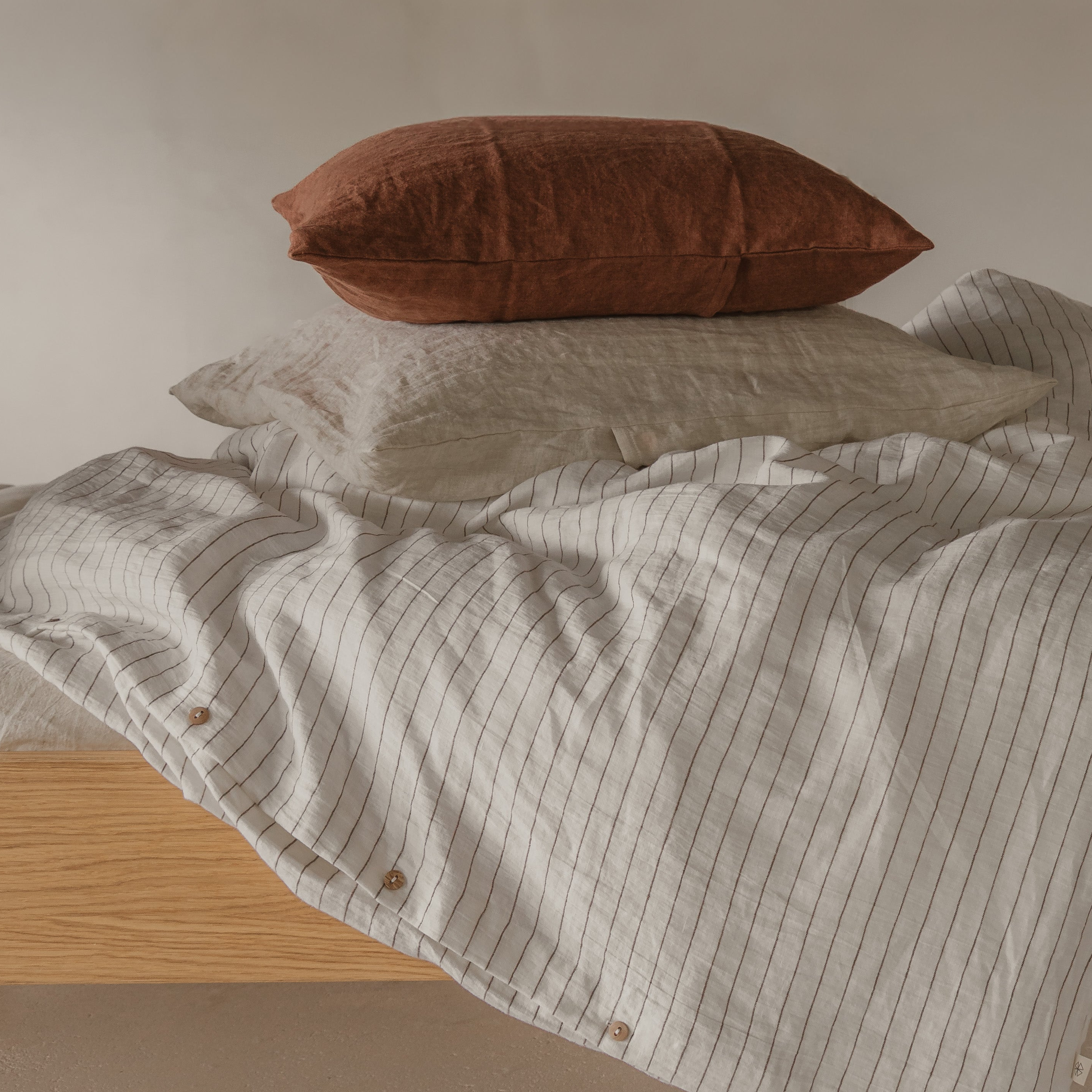 Terra is een rijke terracotta tint en mooi in combinatie met lichte kleuren als flax en sea shell. Style ons terra linnen als accentkleur voor een warme touch, of kies het als basiskleur voor een statement. Deze look past moeiteloos binnen verschillende interieurstijlen, van mediterraan tot Scandinavisch. Laat je inspireren en geef je interieur een warme, stijlvolle upgrade.