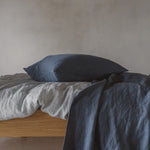 Linnen kussensloop in de kleur faded blue, met de hand gemaakt in onze studio. Faded blue is een zachte blauwtint, mooi als hele set maar ook prachtig in combinatie indigo of met naturelle tinten zoals flax en sea shell. We maken onze kussenslopen met een envelop sluiting aan de achterkant.