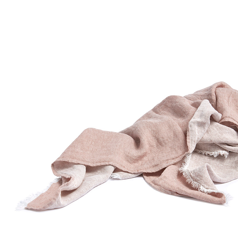 Linnen plaid gemaakt van 100% gewassen linnen in de kleur pink salt. Heerlijk als lichte plaid of zomerdeken, mooi als sprei en ook fijn als strandlaken. De linnen stof is met twee kleuren garen geweven waardoor de plaid twee tinten heeft en je beide kanten van het linnen plaid kunt gebruiken.