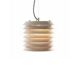 The Maija collection is an expression of the feeling of light that is common in the cities of the Baltic: outwards. Tapiovaara conceived a column of small metal superimposed discs from which the light hangs out from a shimmering panel, shrouded in life. The tripod on which the structure rests and the recesses that allow the light to disperse upwards are particularly striking. The discs were originally in a light nude rose colour, subsequently white was produced and nowadays Santa & Cole offers both alternatives.