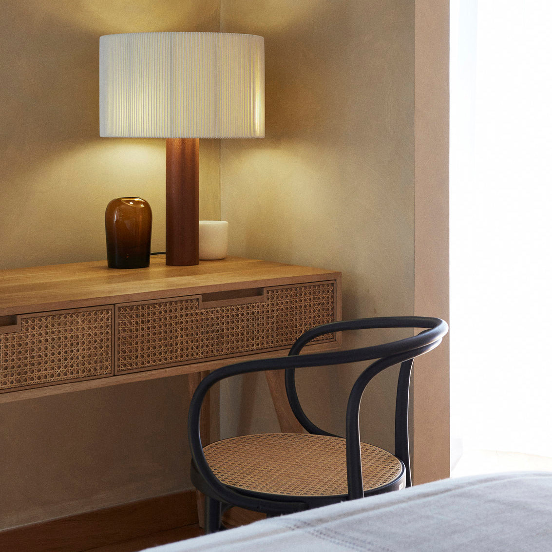 De Moragas lamp is in 1957 ontworpen door Antoni de Moragas i Gallissà voor zijn eigen kantoor. De combinatie van natuurlijke materialen, klassiek design en moderne uitstraling maakt de Moragas Tafellamp tot een mooie designklassieker. Antoni de Moragas i Gallissà was een revolutionaire ontwerper in het naoorlogse Spanje en voorzitter van de Association of Industrial Design FAD. De Moragas lamp heeft een schakelaar met een geïntegreerde dimmer en is geschikt voor LED verlichting. De lampenkap van katoen met zijde rand laat mooi licht door en is sterk, duurzaam en bestand tegen hitte. De Moragas lamp maakt deel uit van de Design Classics Collection van Santa & Cole.