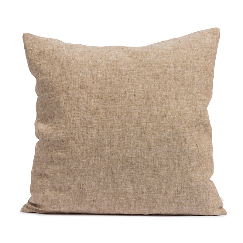 Comfortabel, linnen kussen gemaakt van Europees linnen in de kleur hazel. Chambray geweven met cinnamon en off white garen. Een warme, aardse tint die je heel goed kan combineren met cinnamon en grijze of blauwe tinten.