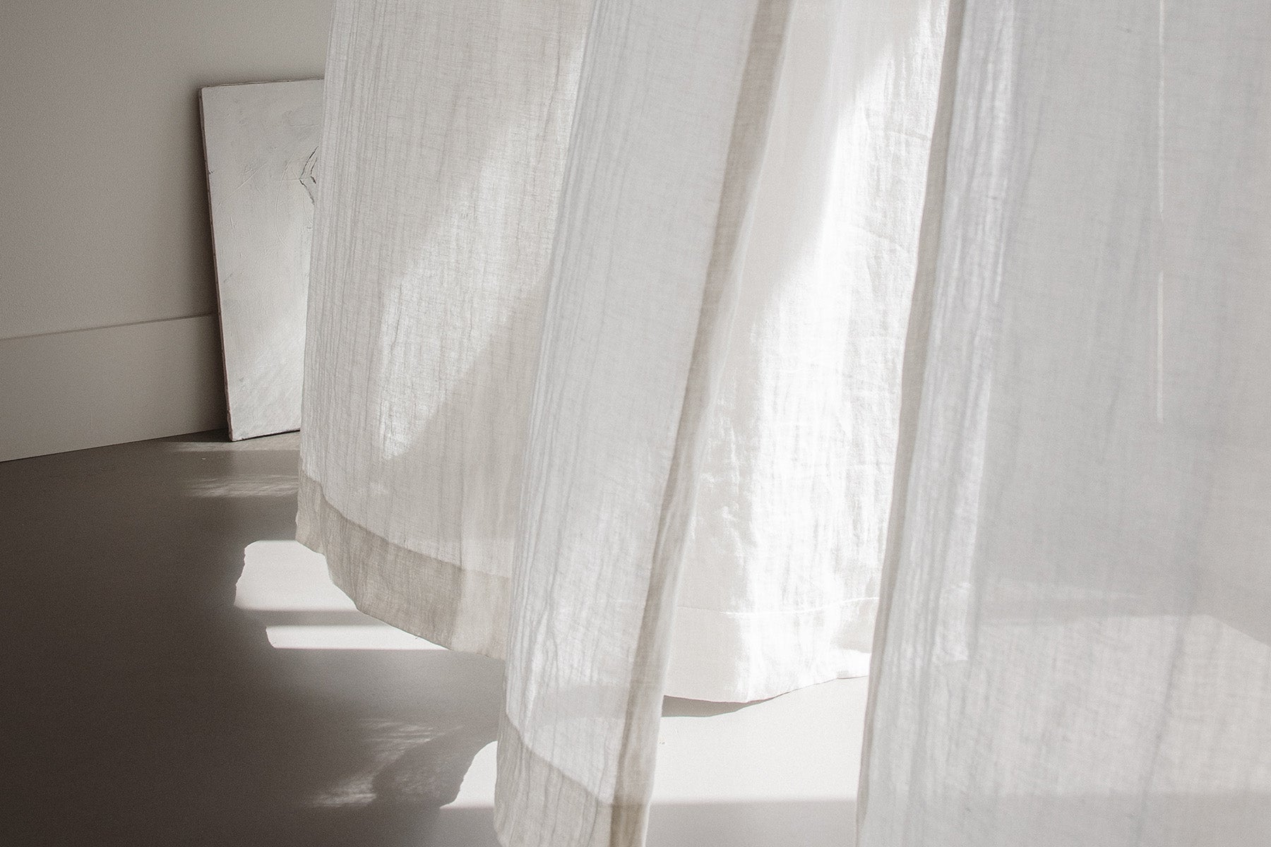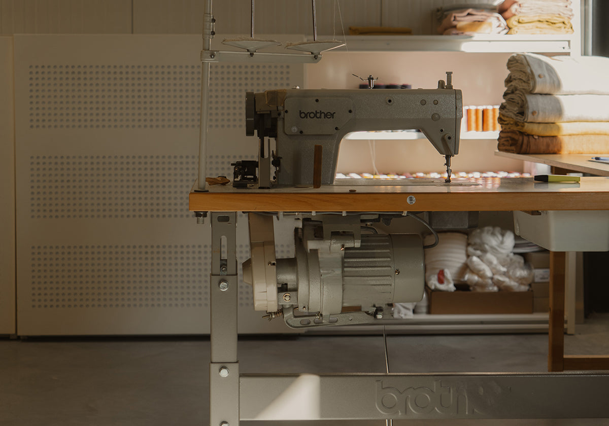 We make all linen bedding, cushions and curtains to order in our atelier, and offer it directly to you. Our linen fabric arrives on rolls and nothing is left to waste. We only make what is needed, smaller pieces are used for samples and the smallest remnants are collected to be spun into new yarn.