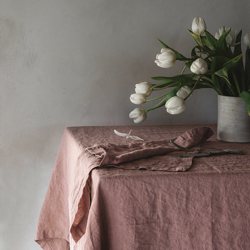 Dress your table with these napkins made of 100% pre-washed linen in coral. Our table linen has a 3 cm folded hem with mitered corners which gives your table a festive look and feel.