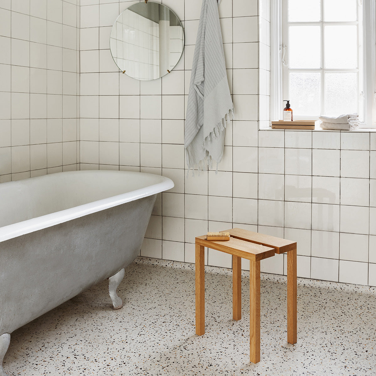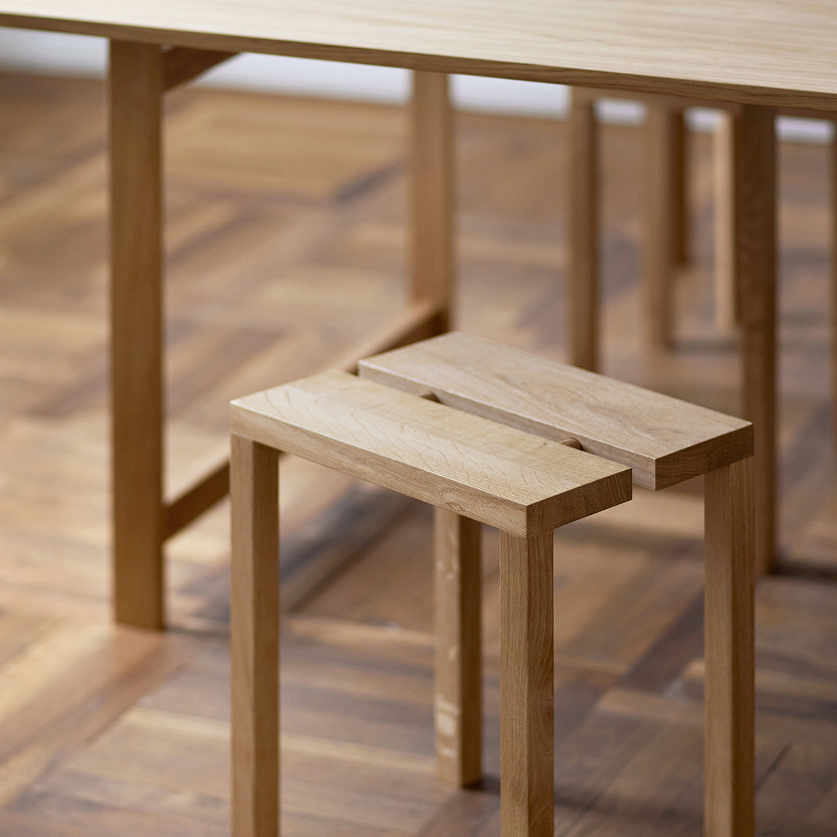 The beautiful peg stool can be used equally well as a seat, small table or display stand. Just like the peg step stool and the peg bench, the stool is formed from two halves which are joined by pegs in the middle. The pegs hold the two halves together and create a handy slot down the centre, making it easy to move the stool around with a single hand. Up to three stools can be stacked together.