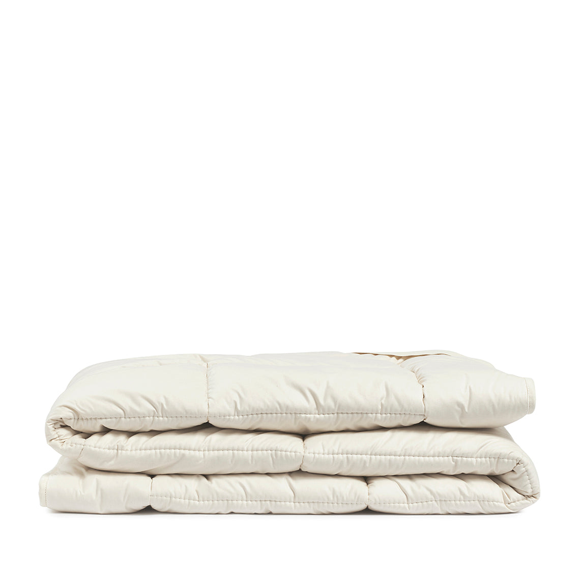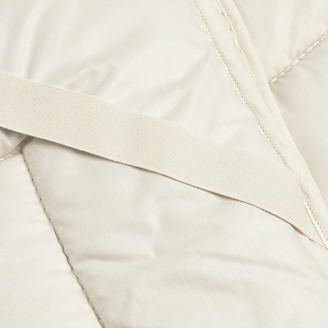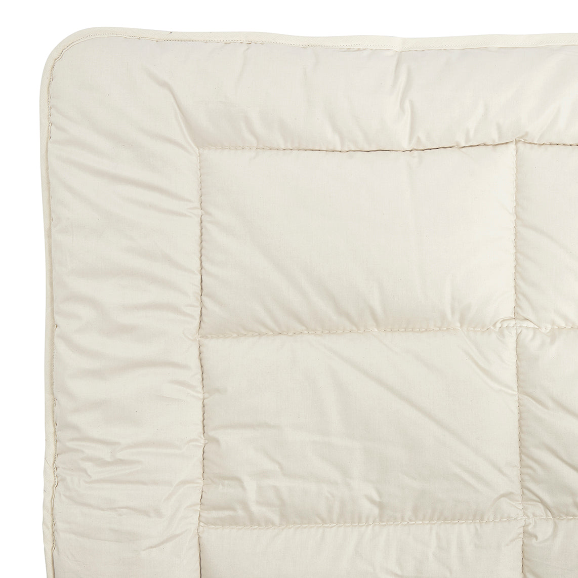 Bring nature inside and sleep tight with this comfy mattress topper made of soft GOTS certified organic cotton and organic linen. The main requirement of a mattress topper is to transport humidity away from your body whilst retaining heat. It is difficult to find this combination of properties in natural fibres. However, our Vegan mattress topper guaranties a dry and warm sleep climate. Cotton provides comfortable warmth and linen fibers act to regulate the humidity whilst also being antiseptic. The latter is especially beneficial in a mattress topper. On soft mattresses the Vegan mattress topper creates a firmer surface while firm mattresses are given a more comfortable sleep surface.